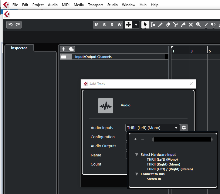 7. 여기까지 하면 THRII 관련 설정은 완료. 이제 큐베이스에서 아래와 같이 적당한 입력 설정하고